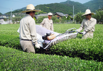 平成元年からは、オリーブ栽培もはじめ、小豆島特産のオリーブオイルや葉を使ったオリーブ茶も自社で栽培・加工しています。特に、栄養たっぷりのオリーブの葉を使ったオリーブ茶は珍しく、独特の甘味と苦味、そしてすっきりとした後味が人気を呼んでいます。しかし、オリーブ茶を作るには、お茶専用のオリーブを育てなければいけません。しかも、葉っぱに農薬がかかると大変です。そのため、口にするお客様の健康を考え、自社の農園で農薬を使わずに栽培。やわらかい新芽を摘んでオリーブ茶を作っています。