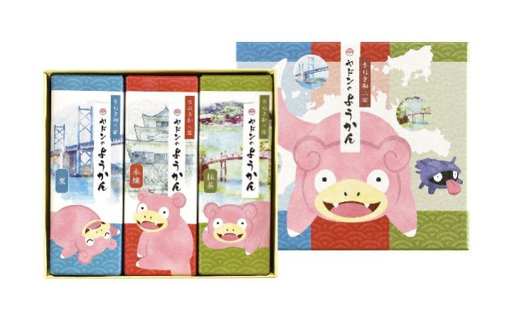 香川県の東部(東讃)の限られた地域で生産されている砂糖 「さぬき和 三盆」を使用した「ヤドンのようかん」の3本セットです。 ヤドンと 香川県の名所をイメージした特製パッケージで、 本煉(こしあん)、抹 茶、栗の3種類のお味をお楽しみいただけます。