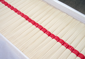 検査員による厳しい検査(異物・油などの付着、異臭、変色麺、もろい麺、乾燥状態、寸法、バチ、麺線、色調、量目不足、結束テープの不良など)が行われているため、品質の高さには定評があります。