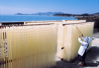 小豆島は400年の歴史を持つ手延素麺(てのべそうめん)の生産地。素麺の日本三大生産地のひとつとしても知られています。