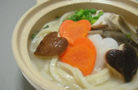 しっぽくうどん、寄せ鍋うどん、サラダうどんなど、何にでもご使用いただけます。また、鍋にそのまま入れ、その上から野菜などを入れて一緒に煮込むと、野菜を食べ終えたちょうどよい頃にうどんが茹で上がります。