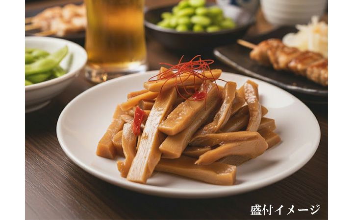 さぬきうどんの出汁で炊いた香川県産メンマです。シャキシャキとした歯ごたえが特長です。