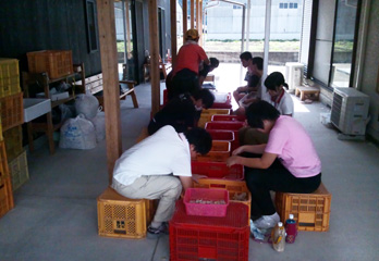 味と香りを存分に出すためには、にんにくをスライスしなければなりません。この大切な作業は、障がい者の自立支援に取り組む作業の一環として、「ねむ工房」の人たちが担当しています。