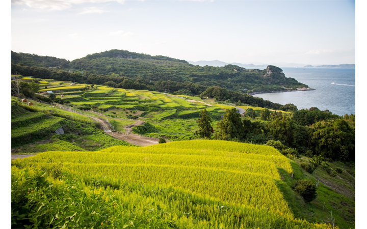 四国の右上に位置する香川県は、日本で一番小さな県です。北側には美しい瀬戸内海が広がり大小100ほどの島が点在しています。そのうち有人島は24。「豊島(てしま)」はその中の1つで、先史時代から人が暮らしてきた歴史のある場所です。日照時間が長く、冬でも温暖な気候が特徴で、さらには島嶼部には珍しく棚田を潤す湧水があり代々稲作を続けてきた島でもあります。近海には豊かな漁場があり、島内では柑橘類やオリーブの栽培も盛んな、文字通りの「豊かな島」。2010年からは3年に1度のアートの祭典「瀬戸内国際芸術祭」の舞台となりました。