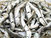 瀬戸内では、チリメン (2cmくらい) →カエリ (3cmくらい) →コバ (小羽) (5cmくらい) →チュウバ (中羽) (7cmくらい) →オオバ (大羽) (8cm以上) と呼ばれています。 ※写真はオオバ (大羽) です。