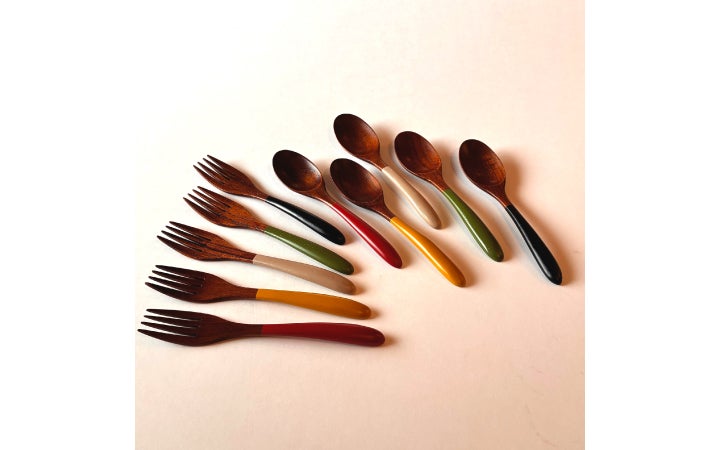 天然木のくりぬきのカップを個性あふれる6色の色漆で塗り分けに仕上げました。